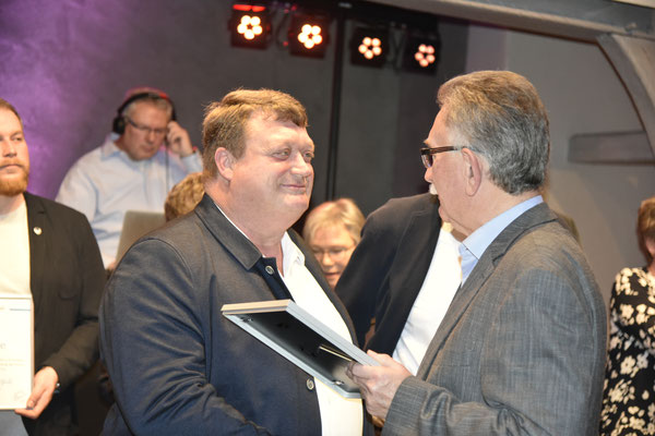 Michael Schäfer als Trainer der Fußball-Damenmannschaft und Christoph Kukuk u.a. als langjährigen Stadionsprecher für ihr Engagement eine Urkunde als Sportler des Jahres überbracht.
